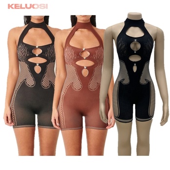 Pantaloncini senza maniche a 4 colori con scollo all'americana con strass tute da donna con tute in Mesh Skinny da Night Club